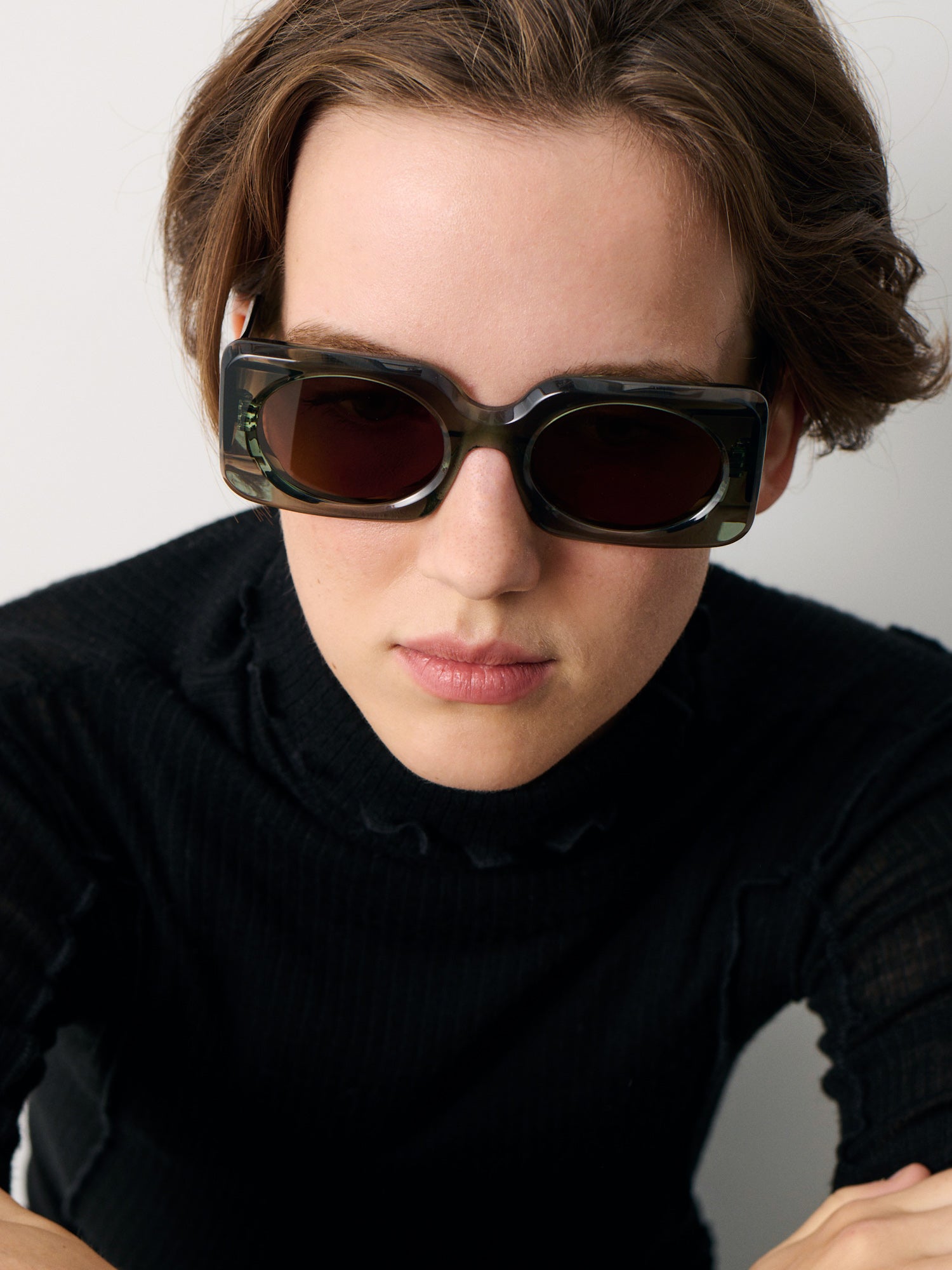 Cette matière est un mélange de pulpe de bois, de fibre de coton et de liants d’origine naturelle. Nous avons choisi de travailler avec un acétate biologique produit en Italie. Ce matériau constitue une alternative plus responsable à l’acétate de cellulose traditionnel et marque notre premier pas vers un engagement pour des matières respectueuses de l’environnement, intelligentes et durables dans l’univers de la lunette.